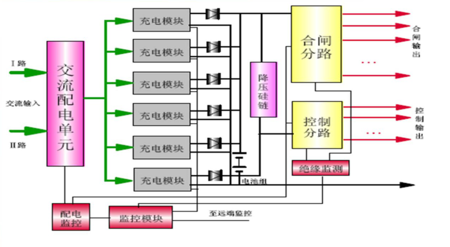 直流電源系統的主要功能單元包括交流配電單元、充電裝置、蓄電池組、降壓裝置、直流饋電單元以及監控單元等。