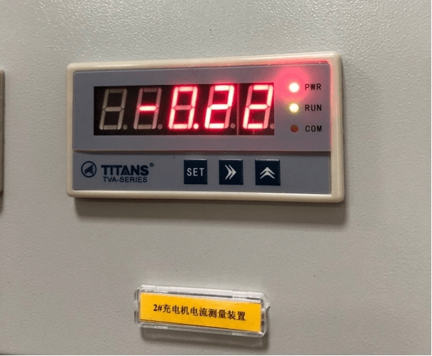 2. 恢復充電機后,通過查詢兩套充電機輸出電流表并用鉗形電流表測量,承認兩套充電機均有輸出。