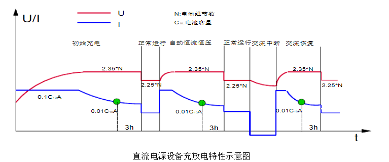 直流屏充電設備在正常運轉方式和毛病狀況下,母線電壓不允許出現(xiàn)中止現(xiàn)象。6.7直流電源設備充電運轉過程特性