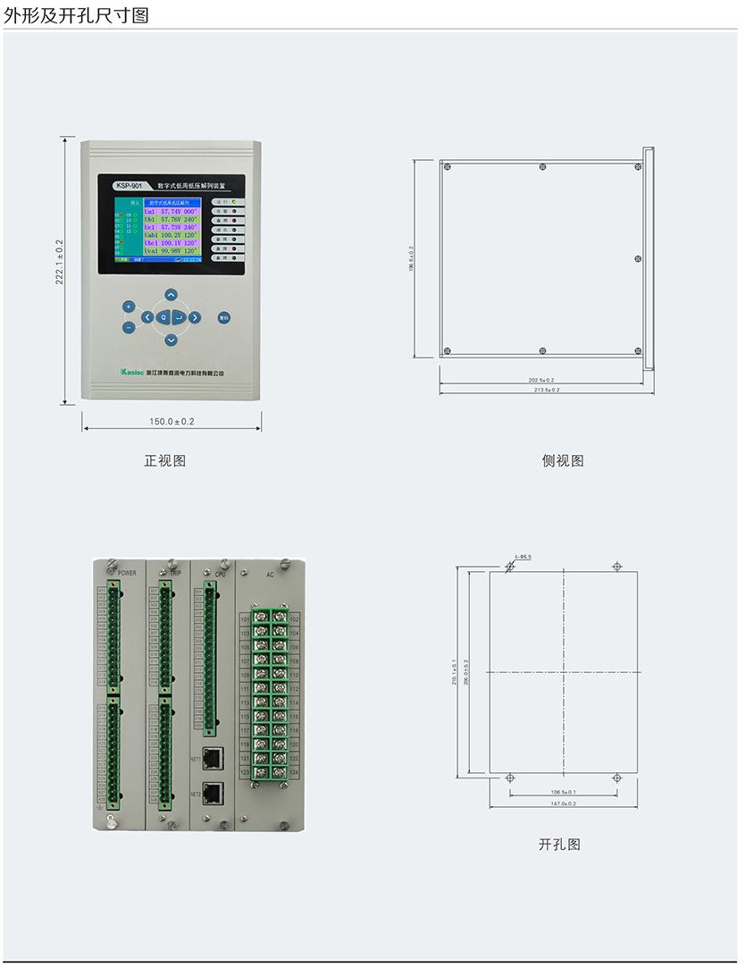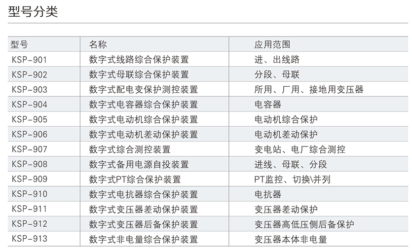 KSP-900 系列綜合保護測控裝置主要適用于 110kV 及以下電壓等級 間隔單元的保護測控,為變電站、發電廠、高低壓配電廠及廠用電 系統的保護與控制提供 完整的解決方案。產品采用完全真彩漢化的 顯示技術 , 人機界面友好,使您免除査找說明書操作的煩惱。每款產 品均配置了基于 PC 機調試界面的接口,結合專用分析調試軟件包 , 大大改善了現場調試手段。裝置可以集中組屏安裝,也可以分散在 開關柜就地安裝。